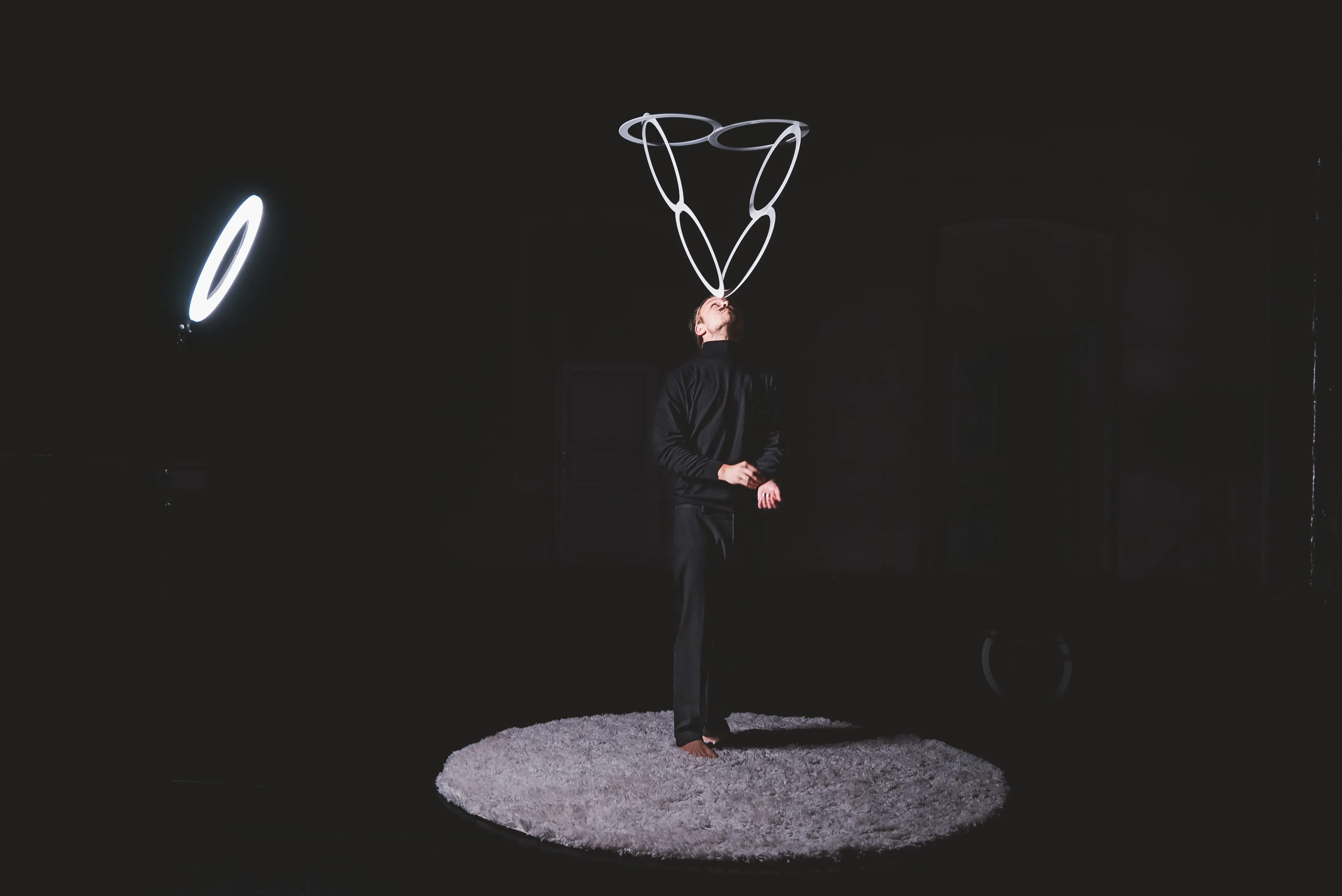 Orbiting Zero is a contemporary circus take on magical realism, using juggling as the main means of expression and elements of new magic to blur the boundaries between realities. The performance explores the physical (im)possibilities of plastic juggling rings, immersing performer and audience in an endless spiral of absurd visual chapters that deconstruct the ring as a shape and juggling as an art form.